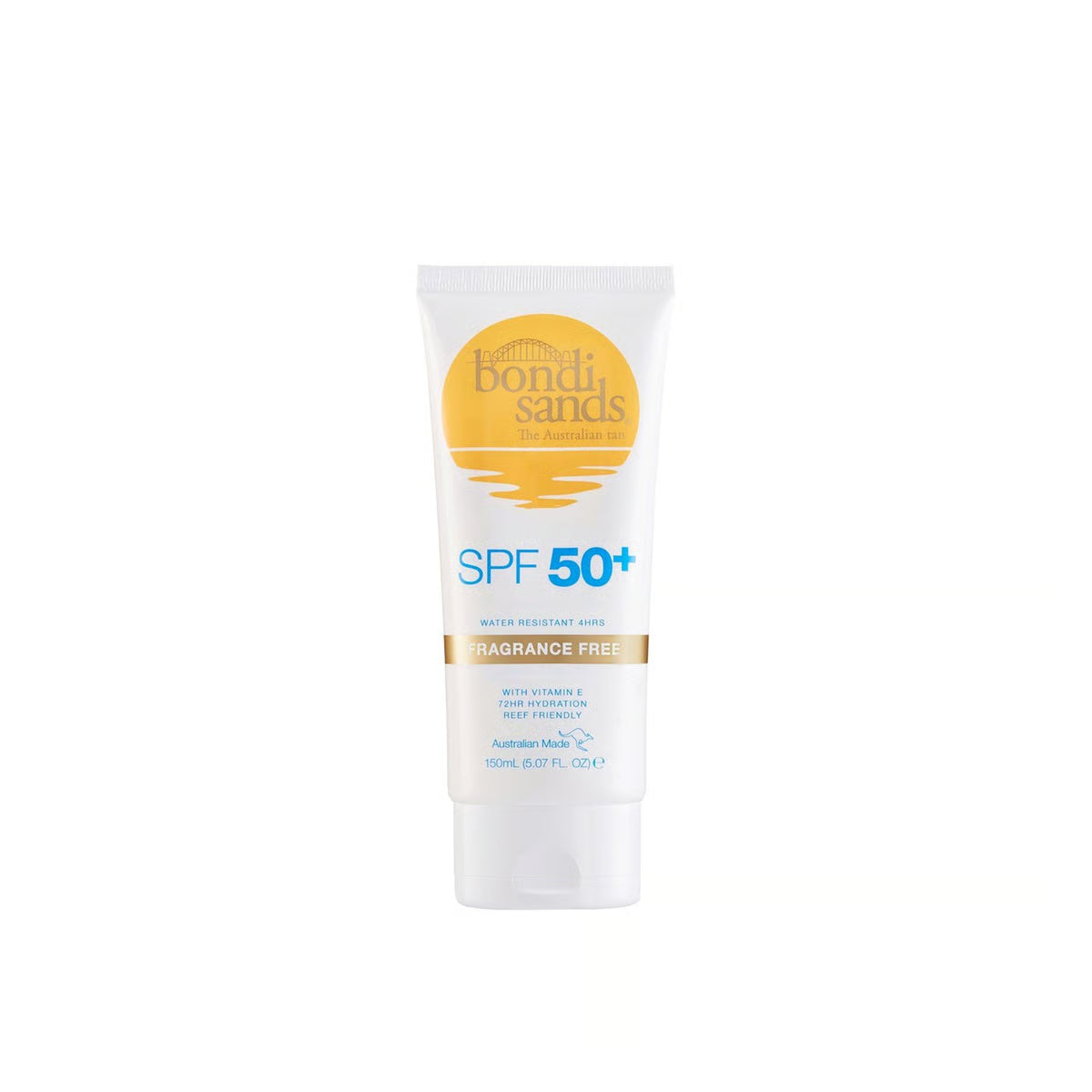 Bondi Sands Fragrance-Free Sunscreen Lotion SPF50+ 150ml is a dermatologically-tested sunscreen that provides very high sun protection. For that purpose, it has an SPF50+ that effectively shields the skin from UVB and UVA radiation, to protect you when exposed to the sun. Even more, its powerful formula provides resistance to water for up to four hours. Nonetheless, it should be reapplied after swimming! In addition to its protective benefits, this body sunscreen also contains caring properties. In this way, it features moisturizing and soothing Aloe Vera which hydrates the skin and reduces redness and irritation. As a result, it leaves the skin smooth and comfortable after each application.